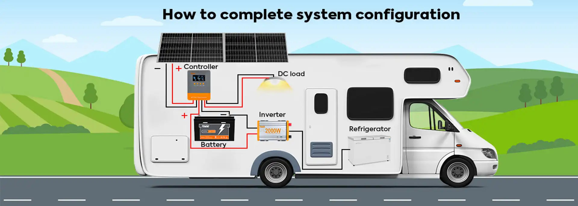 Beim Installieren eines Solarsystems die Komponenten in folgender Reihenfolge anschließen: