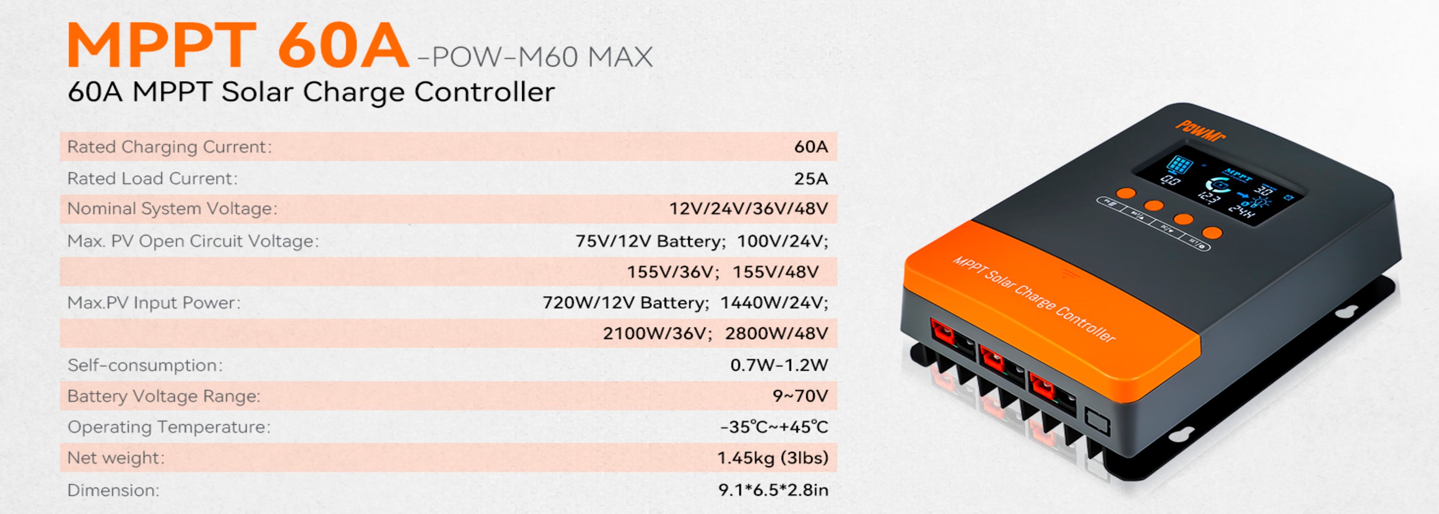Efficient 60A MPPT Solar Charge Controller
