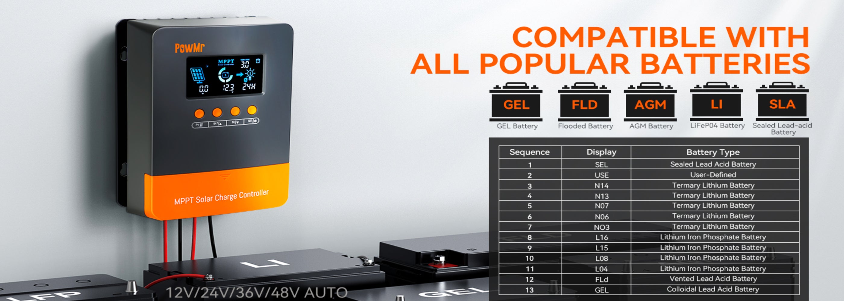 60A 12V 24V 36V 48V MPPT Plug-and-Play-Solarladeregler